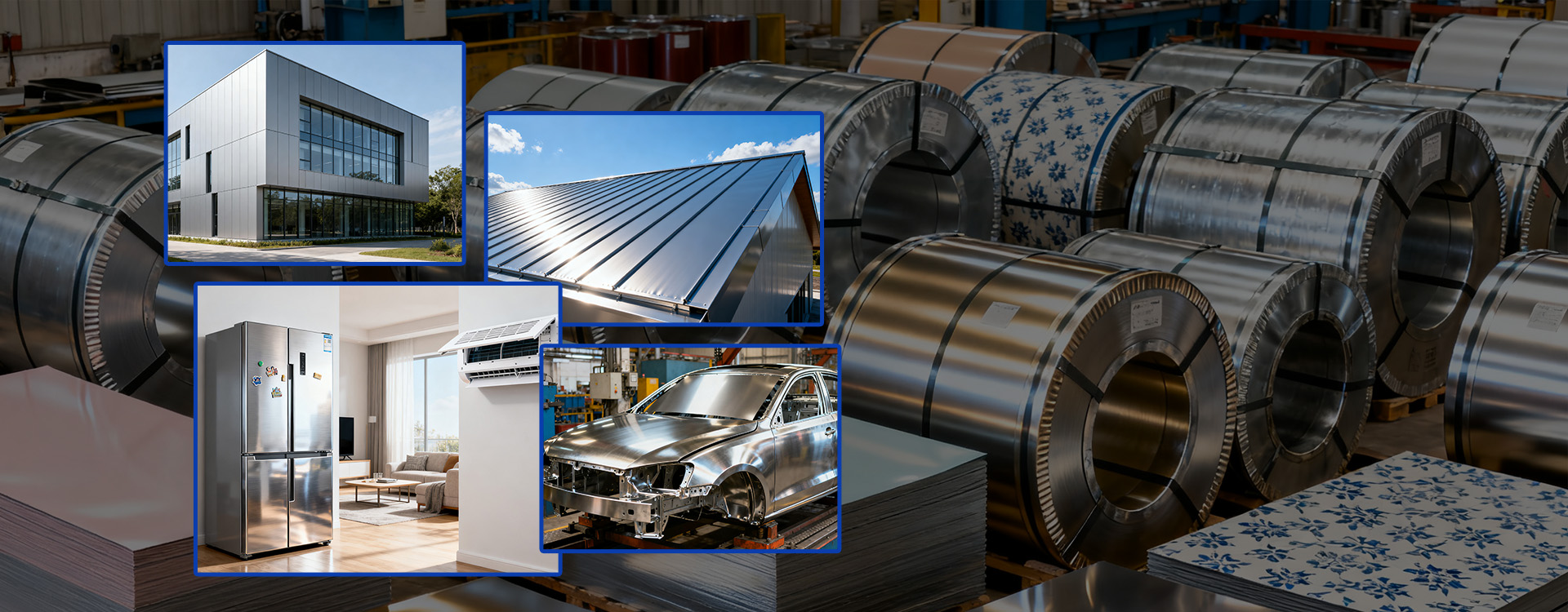 Extensively applied in building roofs/walls, home appliances, industrial facilities, interior/exterior decoration, and transportation for durability and aesthetic appeal.